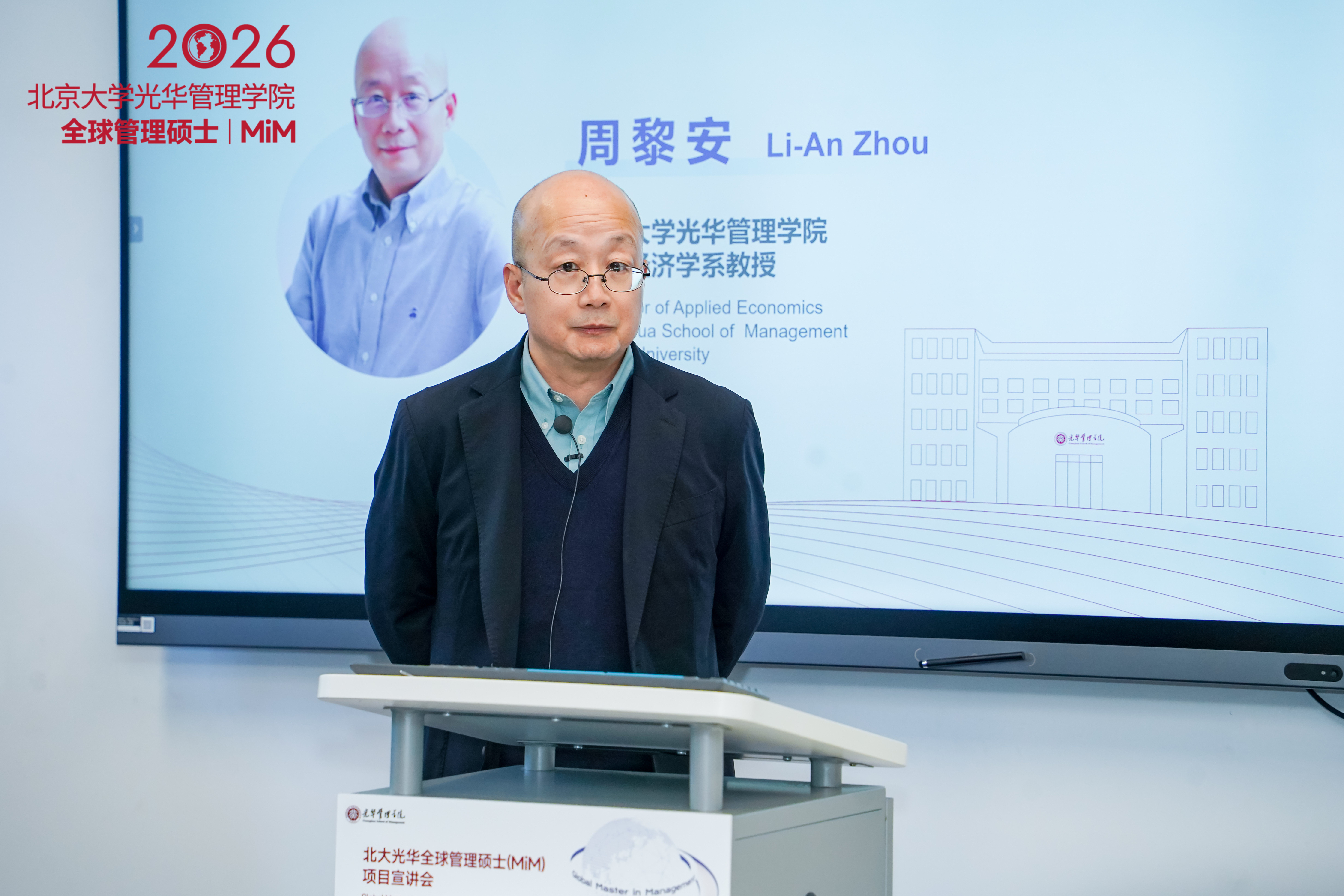 The event featured Liu Qiao, Dean and Professor of Finance; Zhou Li-An, Professor of Applied Economics and Director of PKU’s Economic & Management Division; Xu Xinzhong, Professor of Finance; and  Wang Dongxia, Assistant to the Dean and Executive Director of the Career Development Center/MBA/DBA — all from Guanghua School of Management.