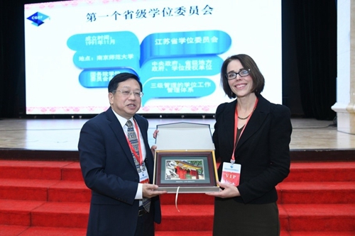 Julia Kent, vice president of the Council of Graduate Schools, made an address on “graduates’ preparation for future challenges” and highlighted the significance of cross-boundary learning and practice. She exchanged views and gifts with Zhang Dongxiao, executive deputy dean of graduate school.