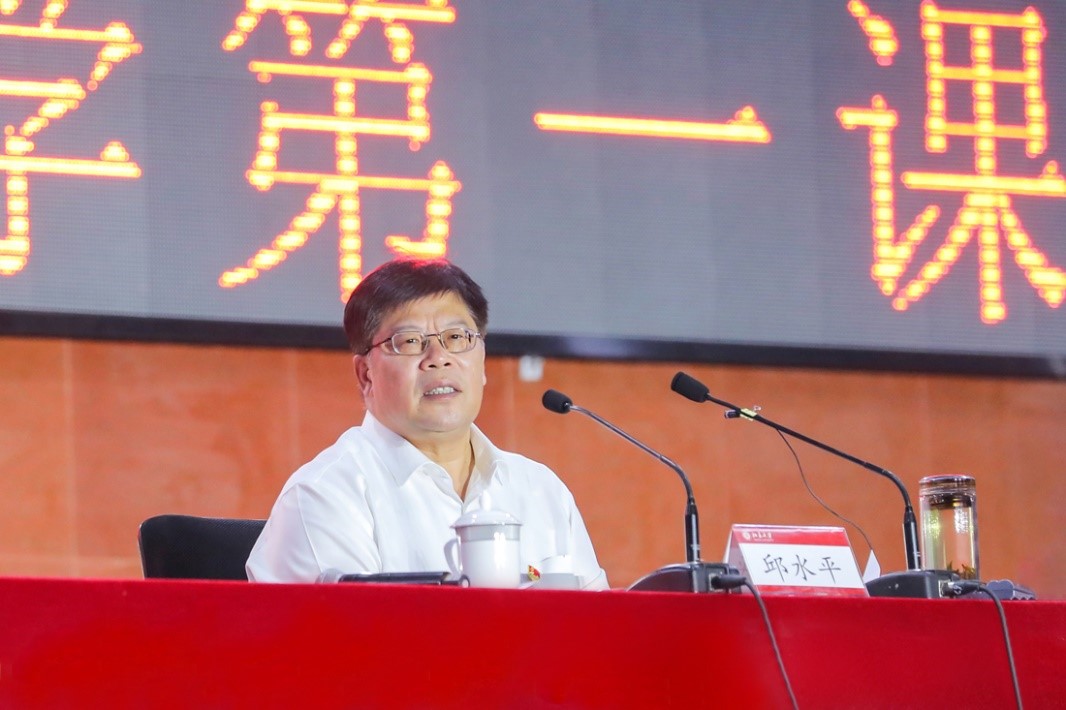 PKU Council Chair Qiu Shuiping delivers a keynote speech to freshmen