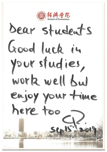 Peking University, Sept 23, 2019: On September 15, Awardee of 2010 Nobel Prize in Economics, Professor of Economics at LSE, Christopher Pissarides visited PKU School of Economics and lectured at the events of “Lectures to Freshmen” and “Face-to-face with Nobel Prize Winners.”