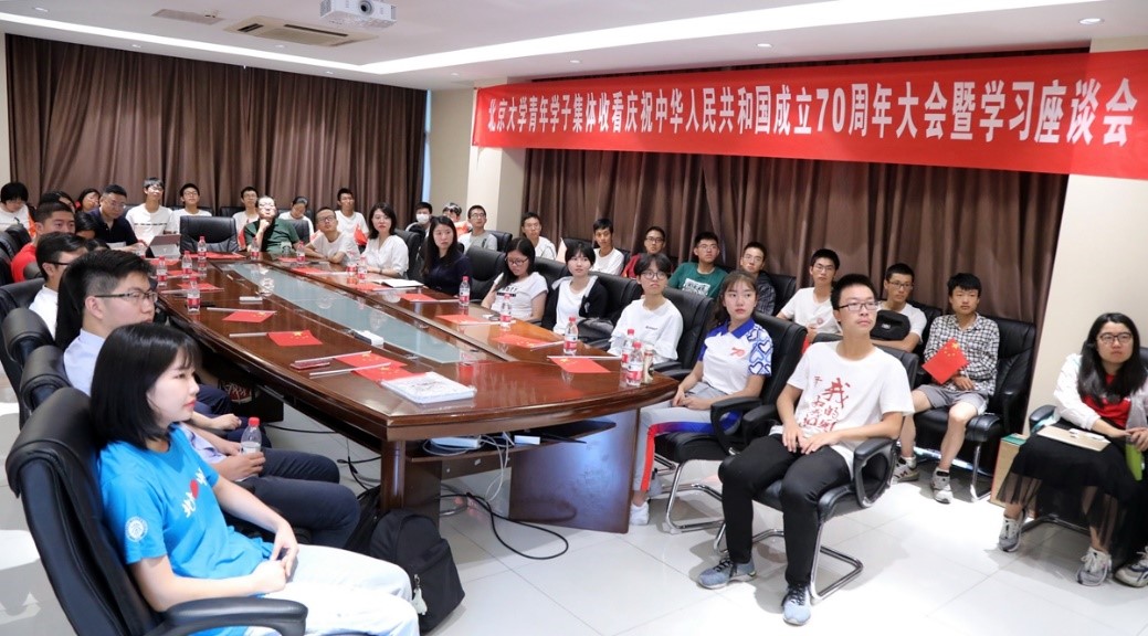 Peking University, Oct 8, 2019: On the morning of October 1, a grand gathering to celebrate the 70th anniversary of the founding of People's Republic of China was held. PKU students gathered together to watch the parade and celebrate the National Day.