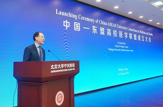 Peking University, Oct. 18, 2019: On Oct. 14, 2019, supported by both ASEAN-China Centre and Peking University, the launching ceremony of China-ASEAN University Consortium on Medicine and Health was held in PKU, and a joint declaration was published in the founding conference. Fang Jun, deputy director-general of International Cooperation and Exchanges of the Ministry of Education, Zhan Qimin, executive vice president of PKU and president of PKU Health Science Center, and Chen Dehai, secretary-general of ASEAN-China Centre attended and addressed in the conference. Members from 42 universities and medical schools in China and ASEAN countries also were present at the inaugural meeting.